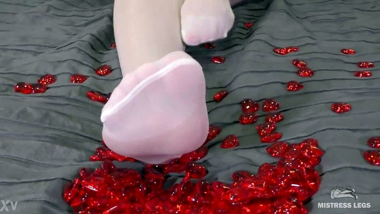 Nylon foot play with red hearts on valentines