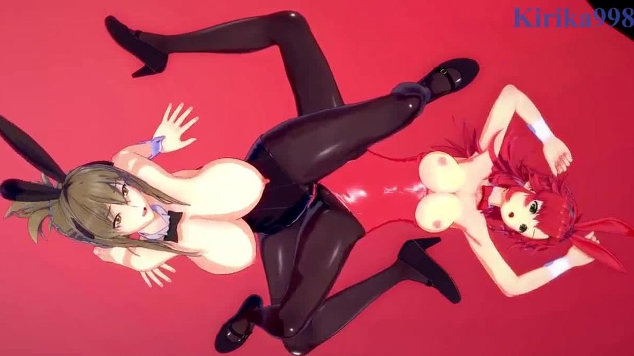 asuka and homura fuck intensely with big tits in hentai