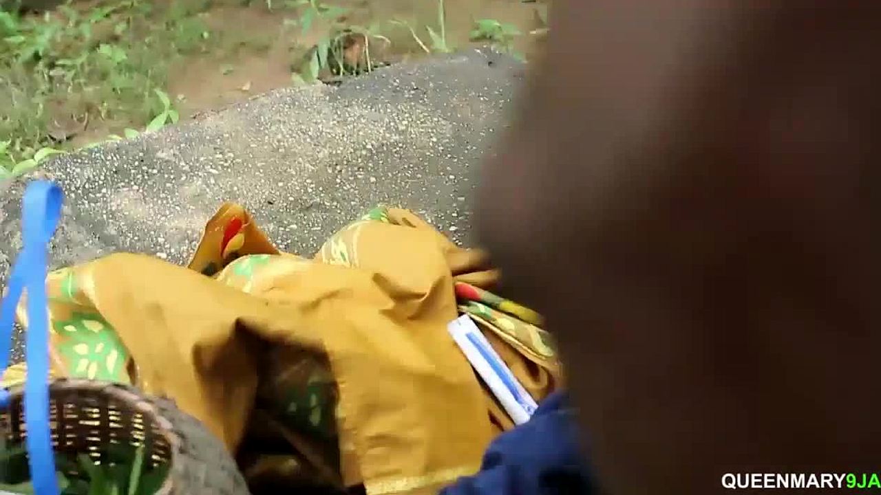 ebony amateur gets bent over for monster cock in bush