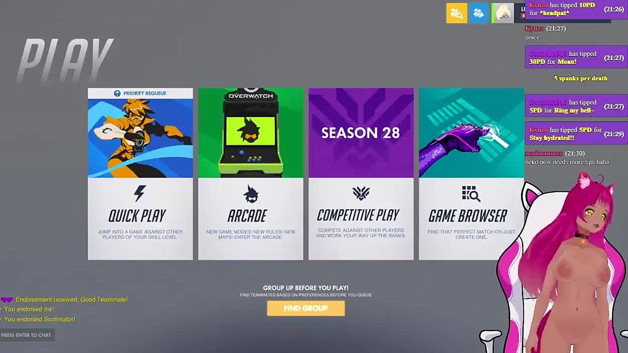 Vtuber lewdneko gets spanked playing overwatch in hentai anime
