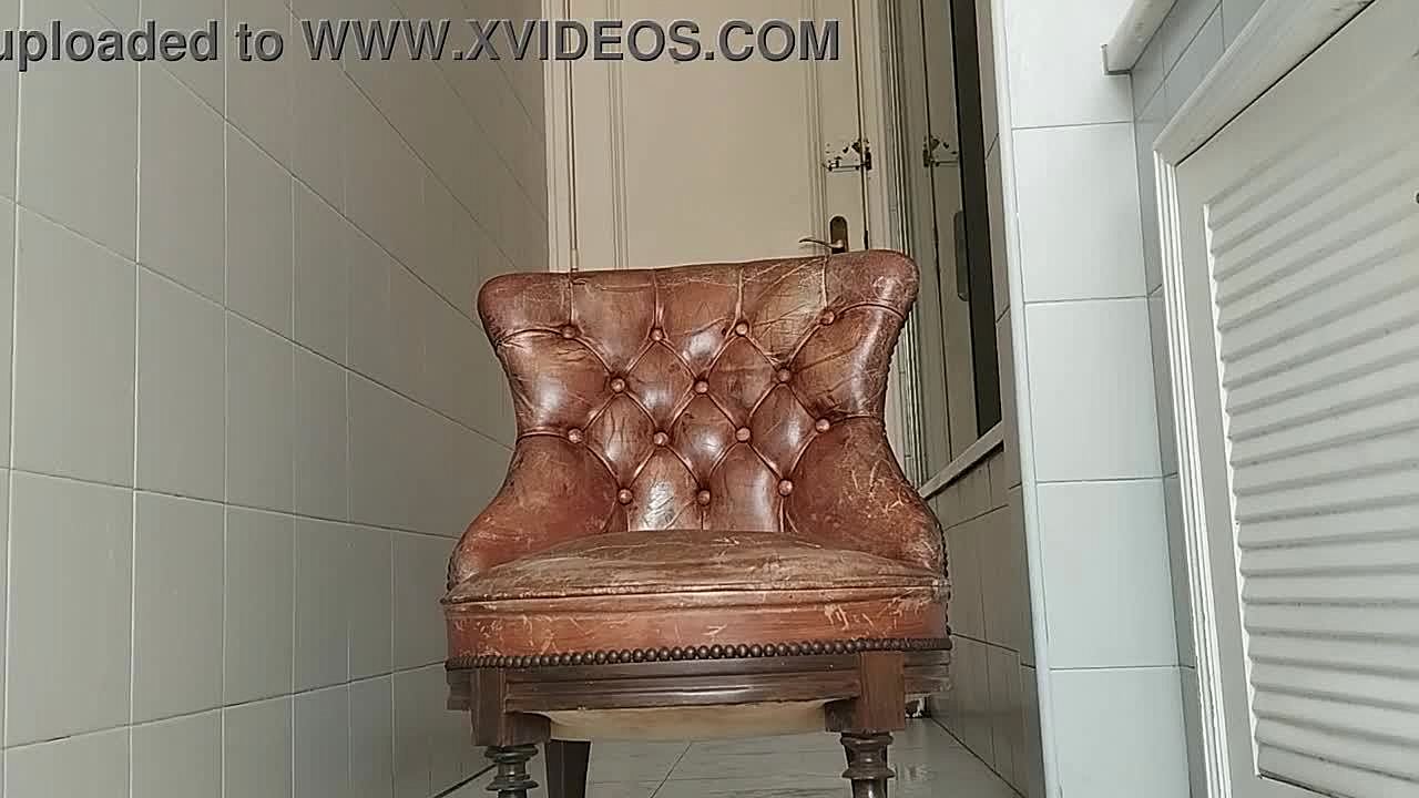 Guy of big dick takes armchair to bathroom and masturbates