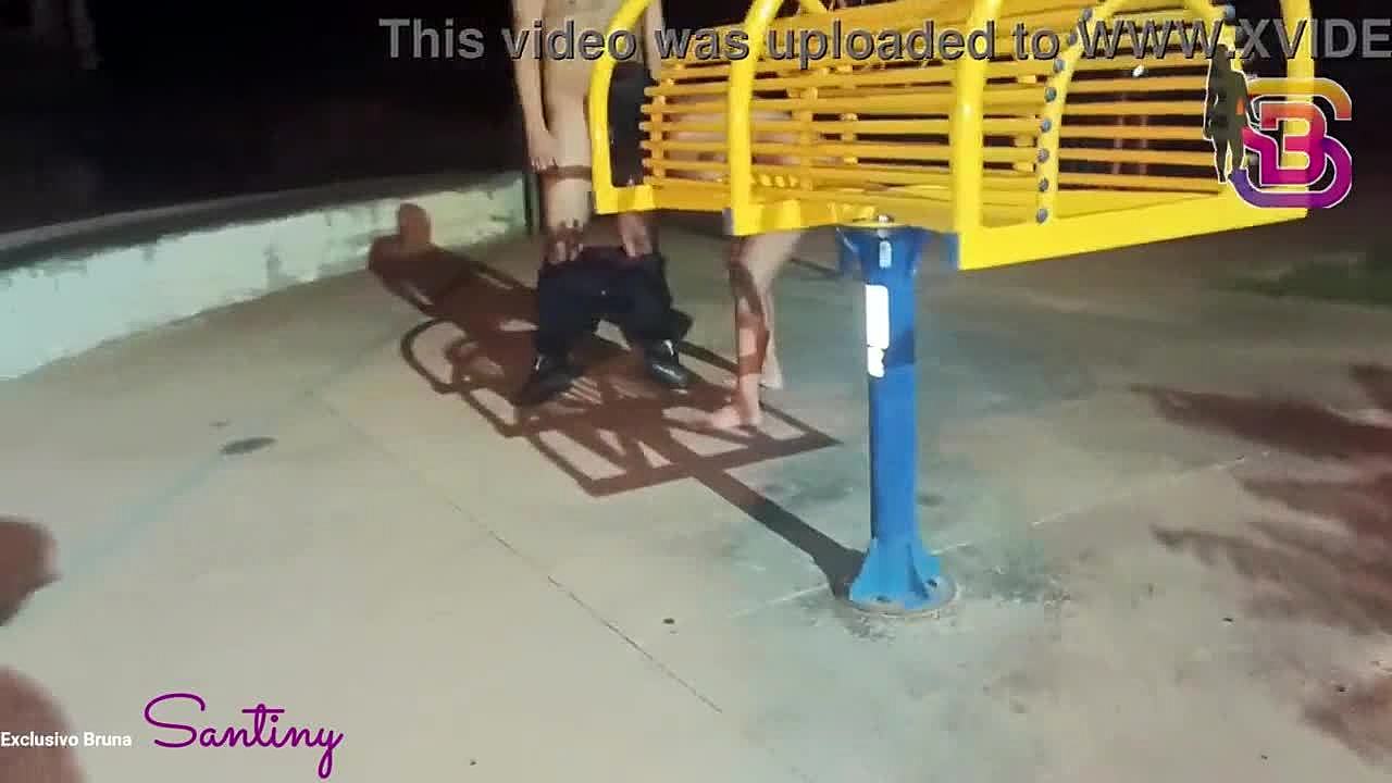 Bending over doggy style in the square then sucking that massive cock