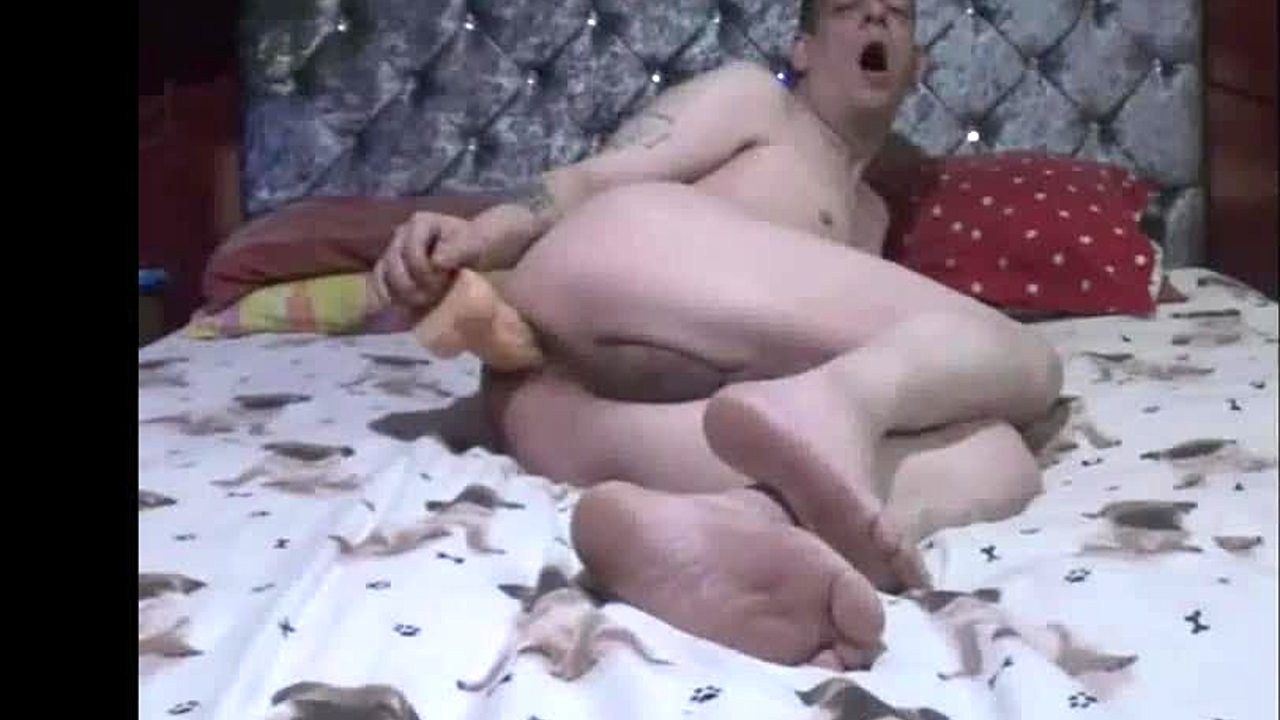 Naked bisexual shoves huge dildo deep in asshole!