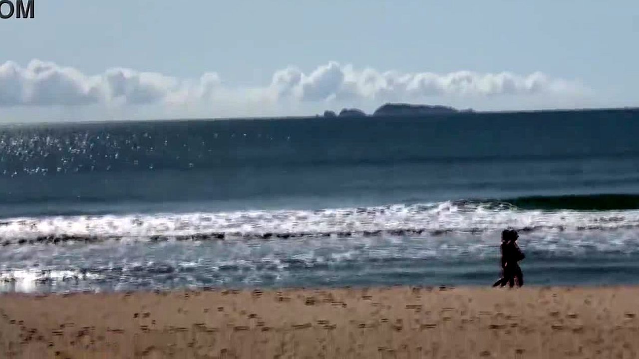 Playful milf teases husband with big ass and natural tits on nude beach, exposing tan lines while voyeurs watch