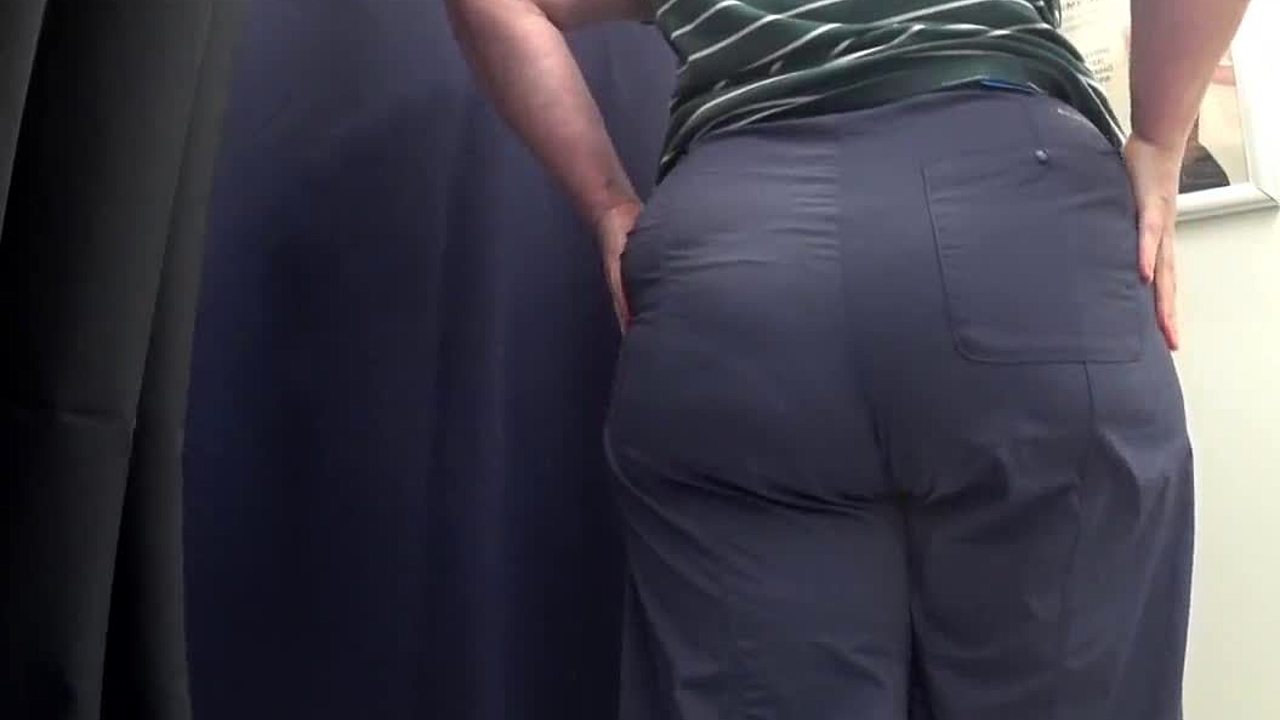 Damn that huge ass milf in tight white panties squeezes into leggings for secret voyeur show